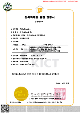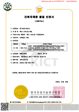 해성 준불연 유기질 EPS 100T~260T 인정서